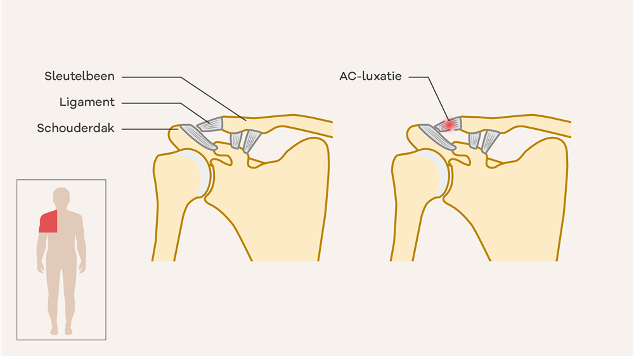 Het AC-gewricht zit tussen het sleutelbeen en het schouderblad. Bij een AC-luxatie is het einde van het sleutelbeen uit de kom. Ook de banden rond het AC-gewricht zijn beschadigd. Als behandeling moet u rust nemen en oefeningen doen. U krijgt ook een sling. Een sling is een soort mitella.