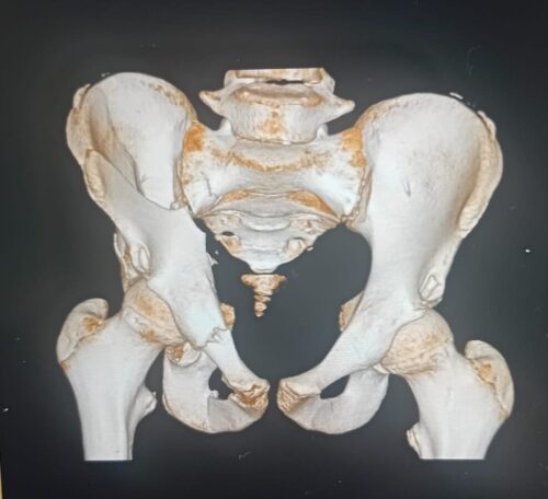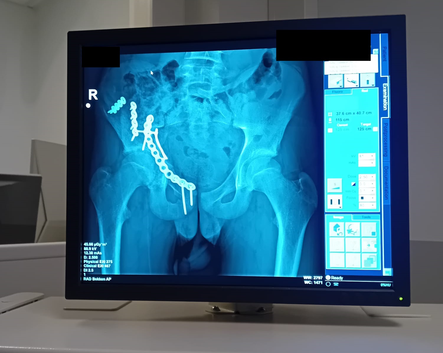 Daar bleek dat de impact van de crash zijn acetabulum (de heupkom waarin het bovenbeen draait) op meerdere plaatsen had gebroken, en ook zijn schaambeen en zitbeen. Om te voorkomen dat de kop van zijn bovenbeen de heupkom verder zou beschadigen, werd diezelfde avond nog een metalen staaf door zijn knie gestoken om het been in tractie te houden.